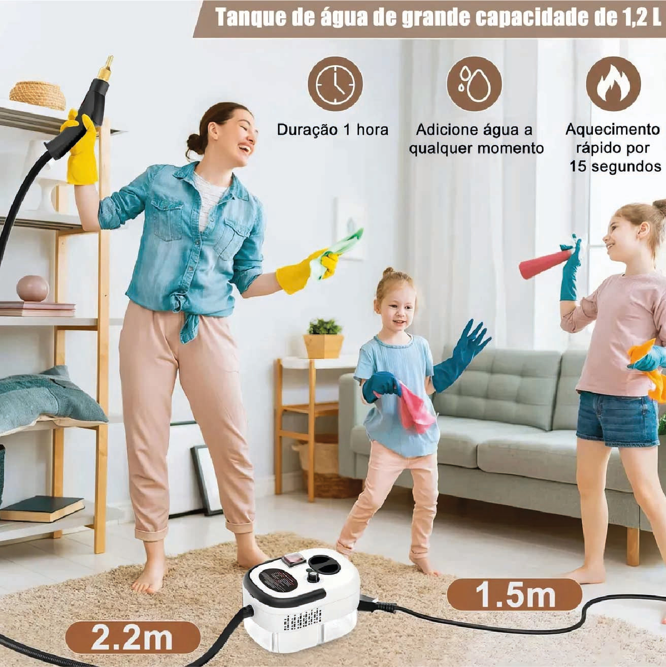 Genera vapor en pocos segundos para facilitar la limpieza en cocina, baño, auto y más.