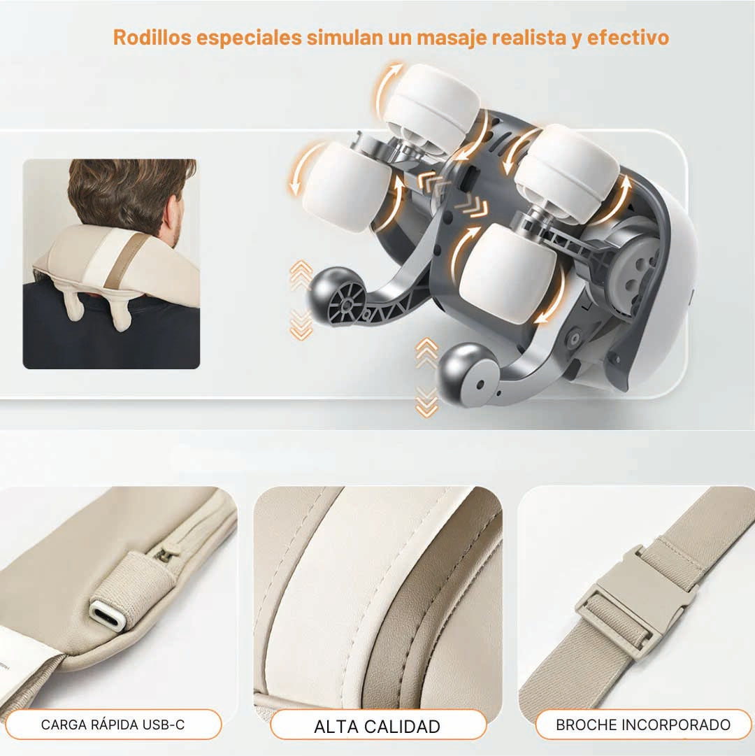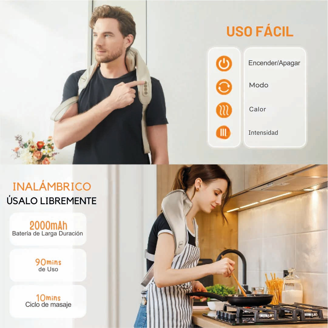 👉 Masaje envolvente que se adapta al cuerpo para una experiencia reconfortante en cuello, hombros y espalda.